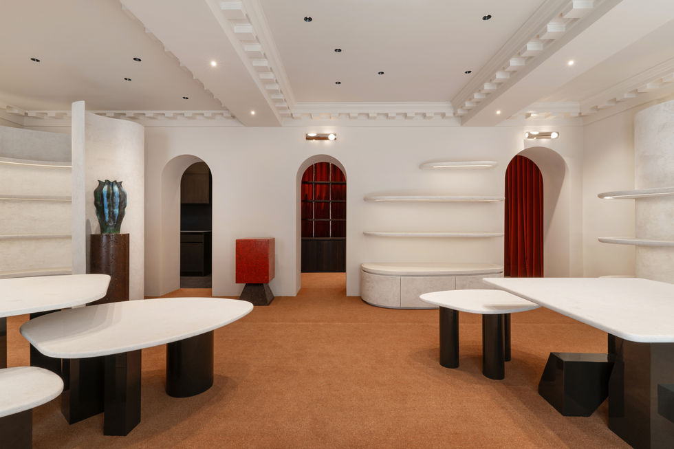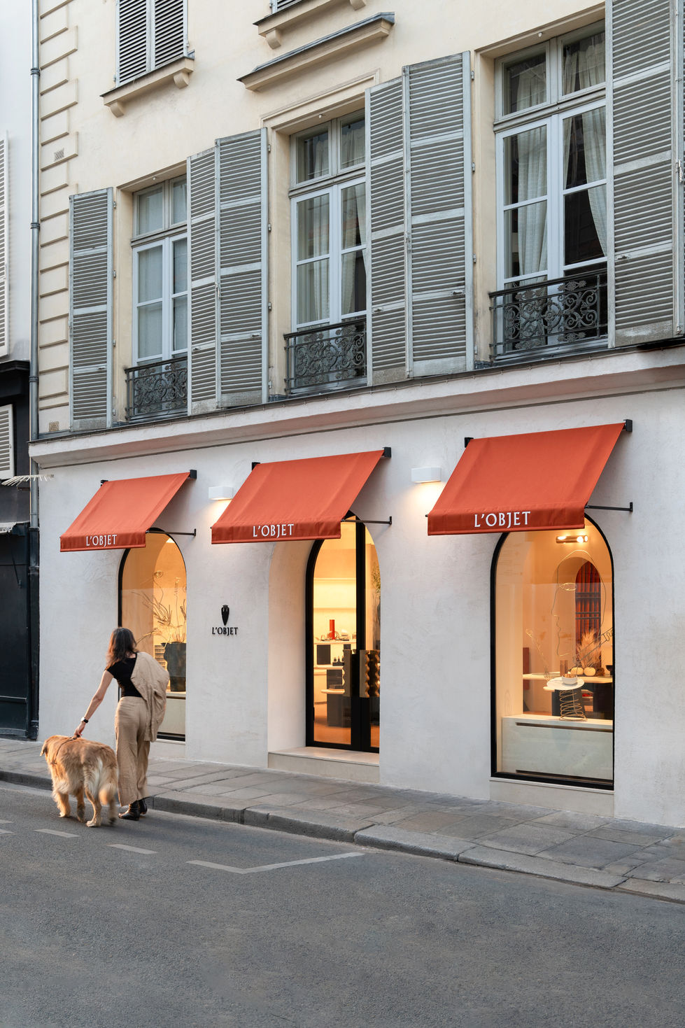 Pour la boutique L'Objet, projet de création d'un revêtement mural et d'habillement des façades de meubles, avec un enduit décoratif minéral, à base de chaux hydraulique.